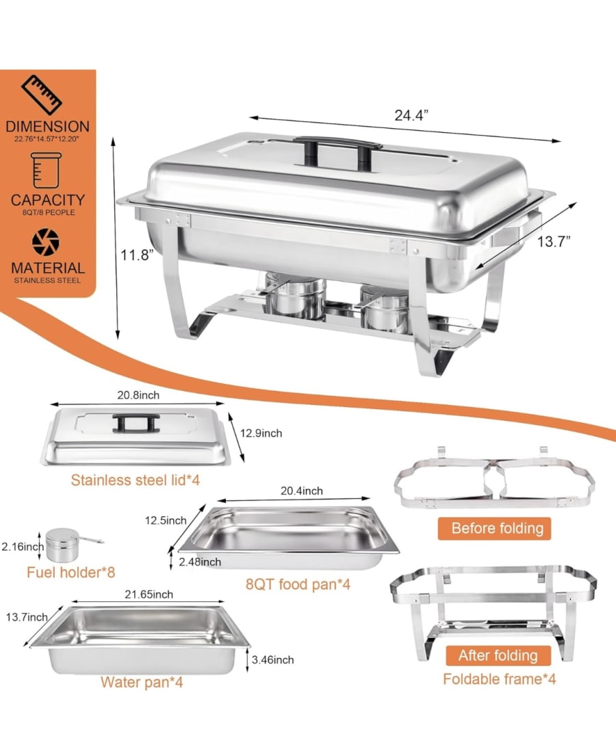 With our main service + 8 qt stainless steel chafing dish, you can count on receiving a product that delivers both in terms of style and functionality. Ideal for hotels, restaurants, catering services, and home use, this chafing dish is perfect for keeping your culinary creations at the perfect temperature, ensuring your guests enjoy their meals from start to finish.