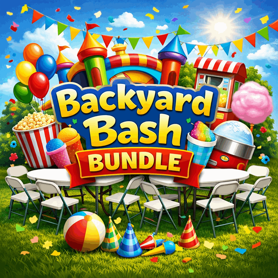 The Backyard Bash Bundle is the all-in-one solution for birthdays, family gatherings, school events, and block parties. This ready-made package delivers an inflatable, a concession machine, three 6 ft. folding tables, & 24 folding chair. Quick setup. Low stress. Big fun. Book your date and let Tripp’s Fun Zone bring the party. πΏπ