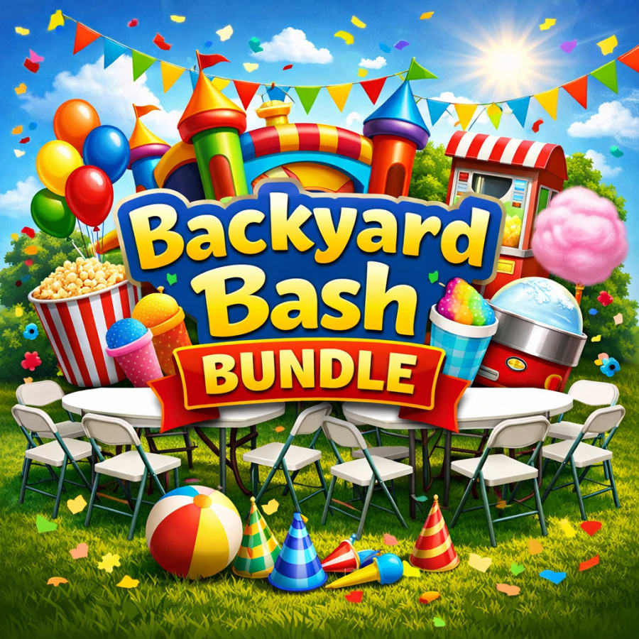 The Backyard Bash Bundle is the all-in-one solution for birthdays, family gatherings, school events, and block parties. This ready-made package delivers an inflatable, a concession machine, a giant game, three 6 ft. folding tables, & 24 folding chair. Quick setup. Low stress. Big fun. Book your date and let Tripp’s Fun Zone bring the party. 🍿🎈